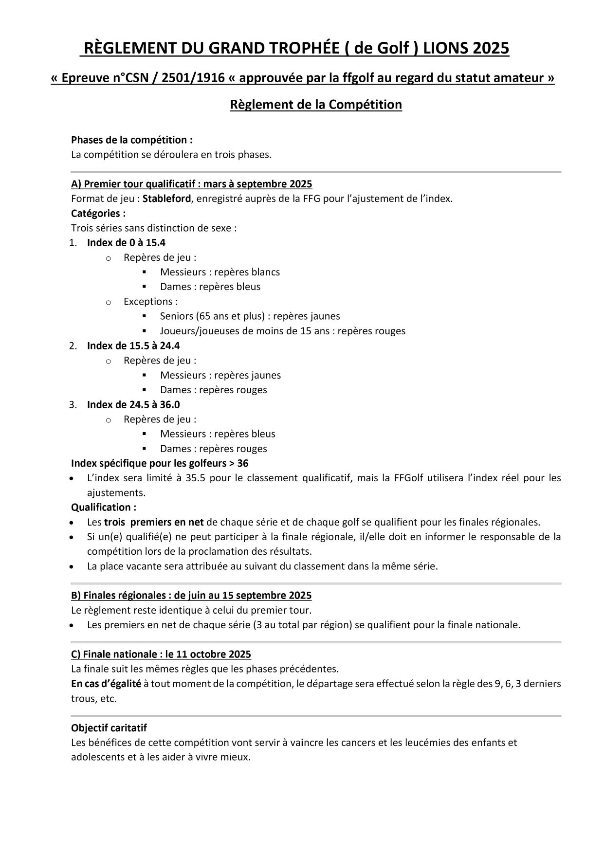 Formule de jeu : Individuel Stableford